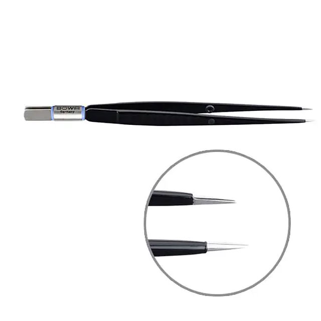 Estas pinzas tienen un recubrimiento de protección para evitar quemaduras y dispersión del calor, una superficie antirreflexivo y resistencia eléctrica hasta 550Vp. Con una conexión tipo europea plana se pueden conectar a cables estándar bipolares para uso en los equipos electroquirúrgicos convencionales.